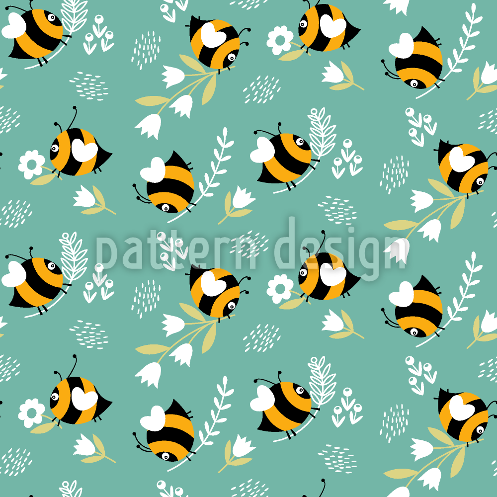 원래 귀여운 꿀벌과 꽃 원활한 벡터 패턴 디자인
