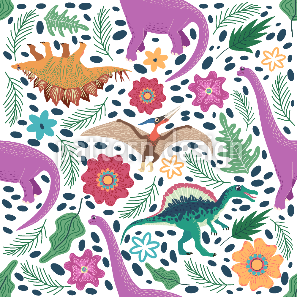 | 설명 | 손으로 그린 공룡, 열대 잎, 꽃으로 손으로 그린 원활한 패턴입니다. | ||