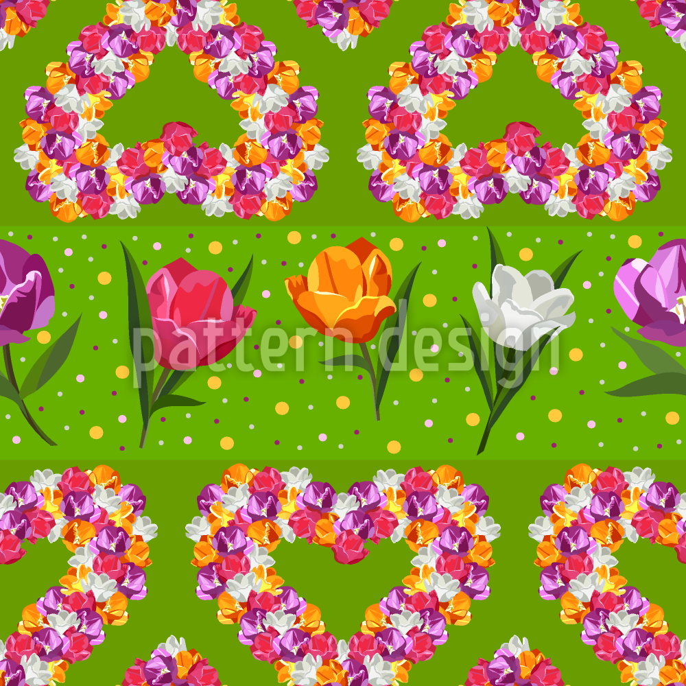 | 설명 | 하트 모양의 튤립 화환과 원활한 패턴 디자인. | ||