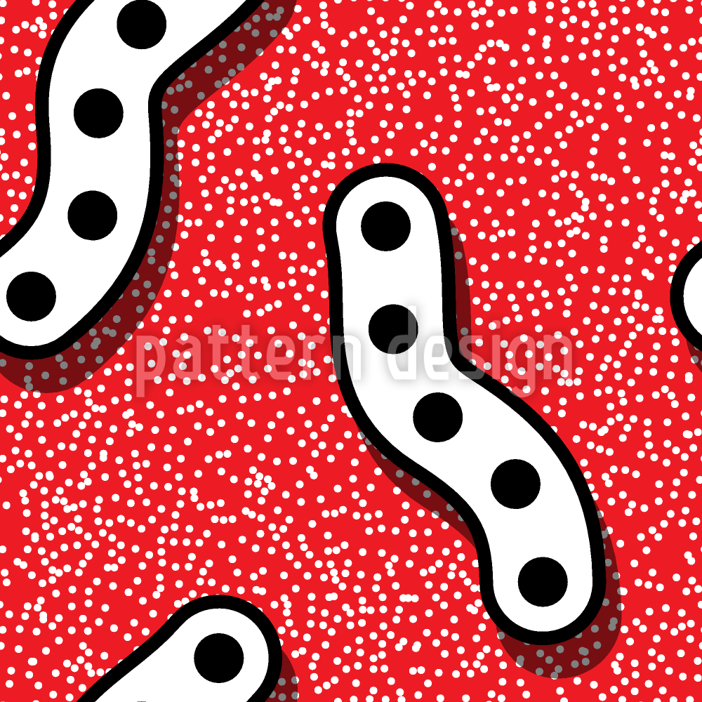 | 설명 | 빨간색 배경에 검은 색과 흰색의 기하학적 유기 요소가 작은 흰색 점이 있습니다. | ||
