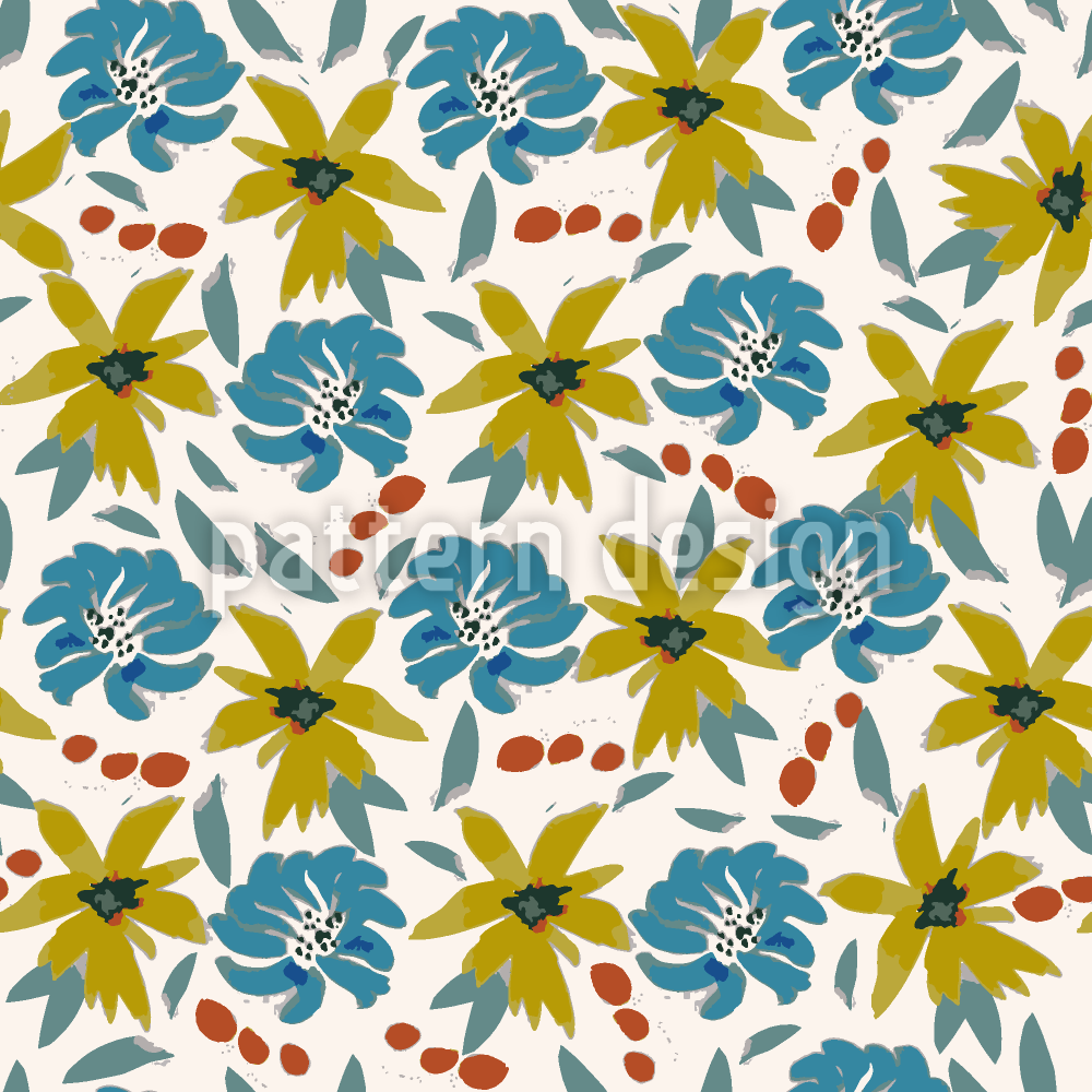 | 설명 | 수채화 꽃, 나뭇잎, 점이 있는 버날 디자인. | ||