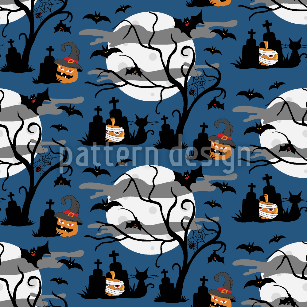| 설명 | 으스스한: 묘지에서 호박, 고양이, 박쥐의 비밀 만남을 보여주는 패턴입니다. | ||