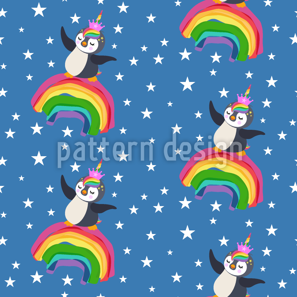 유니콘 펭귄 온 레인보우 원활한 벡터 패턴 디자인