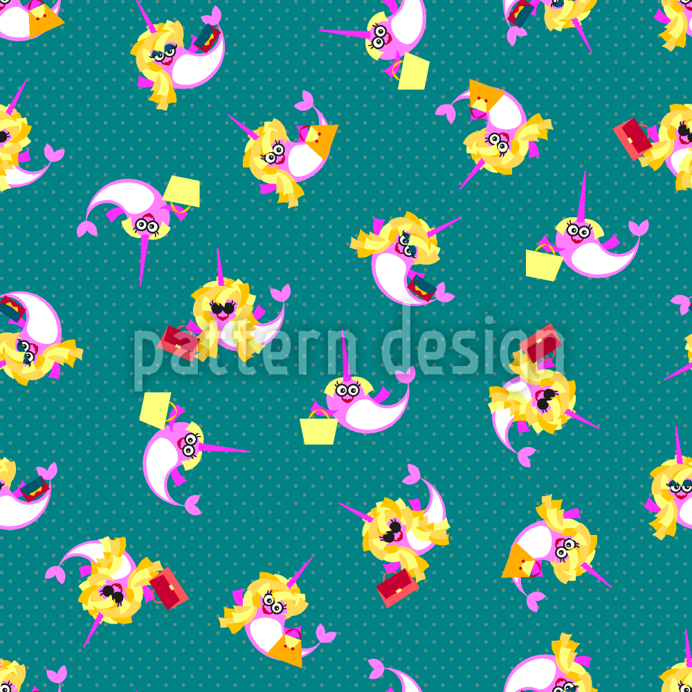 쇼핑 투어 중인 일각고래 원활한 벡터 패턴 디자인