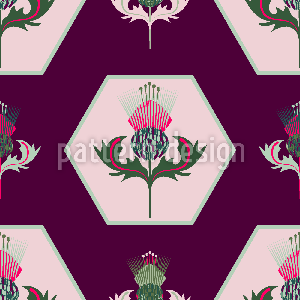 | 설명 | 다소 엄격하지만 눈에 띄는 형식의 엉겅퀴가 특징인 레트로 데코 디자인으로 벽지, 직물, 가정용품 등에 적합합니다. | ||