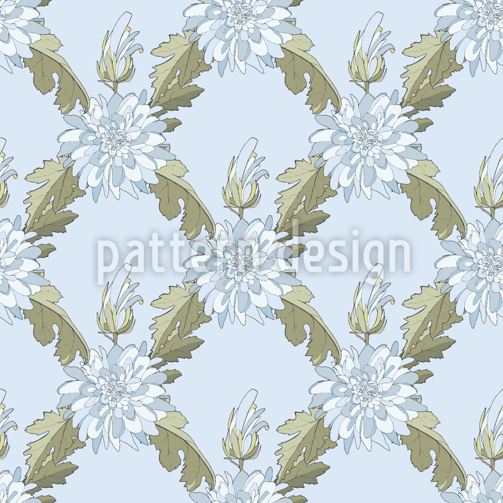 국화 꽃과 나뭇잎 원활한 벡터 패턴 디자인