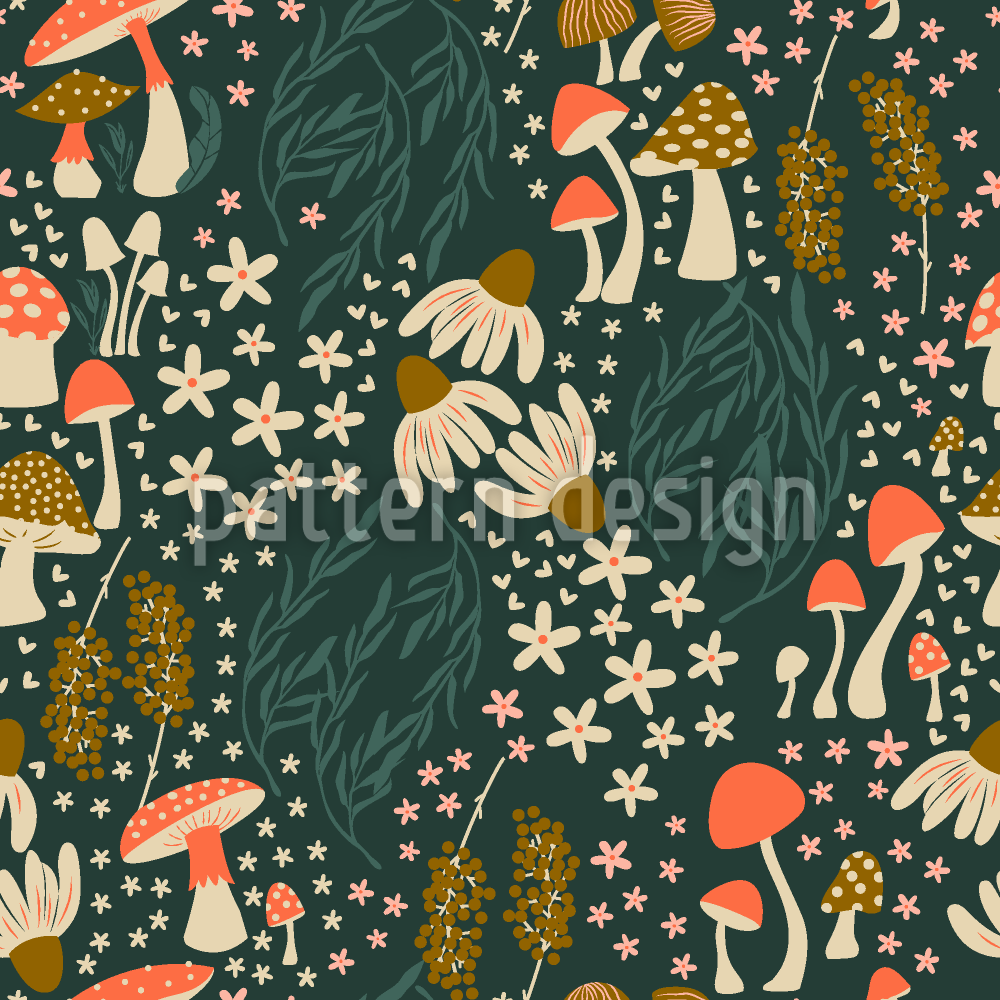 버섯과 꽃밭 원활한 벡터 패턴 디자인