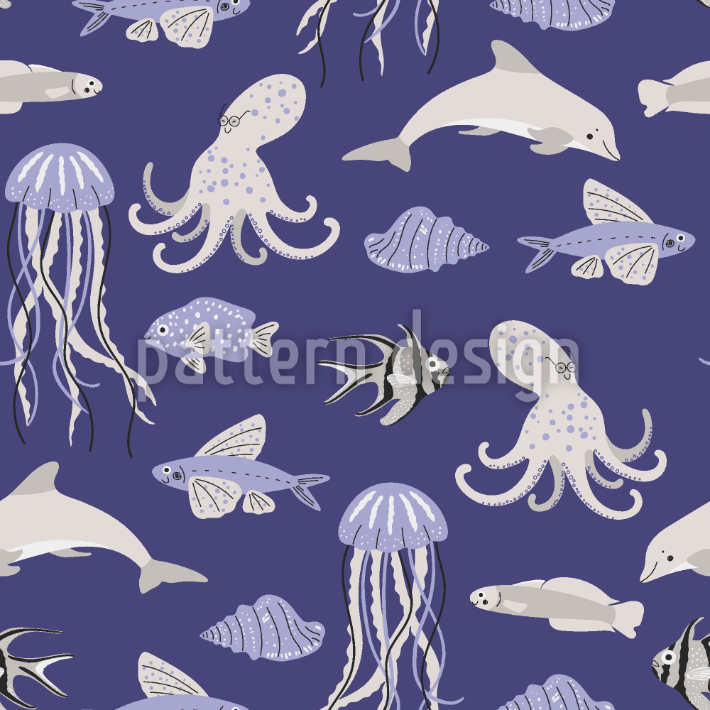 | 설명 | 문어, 물고기, 해파리, 돌고래, 날치 등 손으로 그린 귀여운 바다 생물의 심리스 패턴. | ||