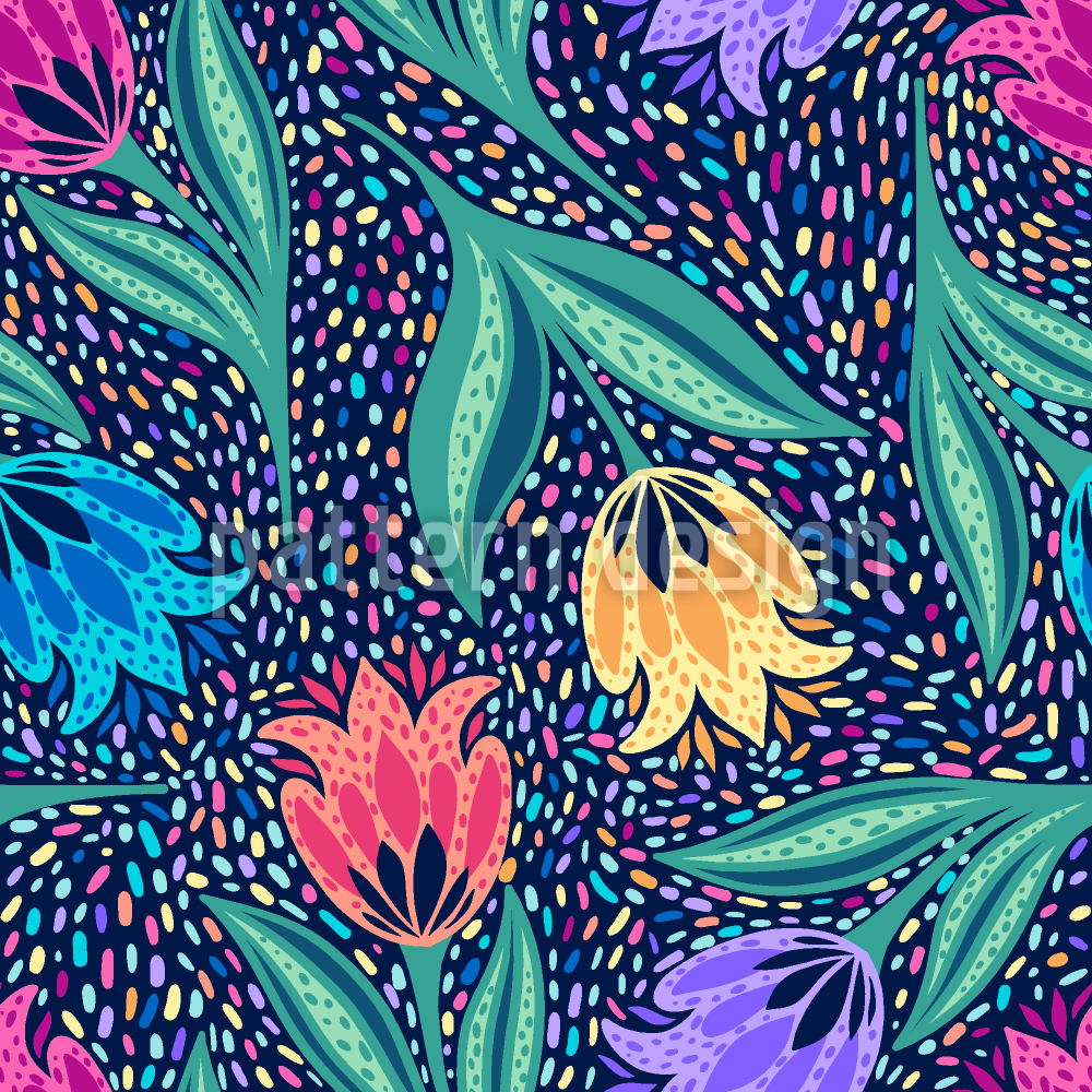 포인틸리스트 튤립 원활한 벡터 패턴 디자인
