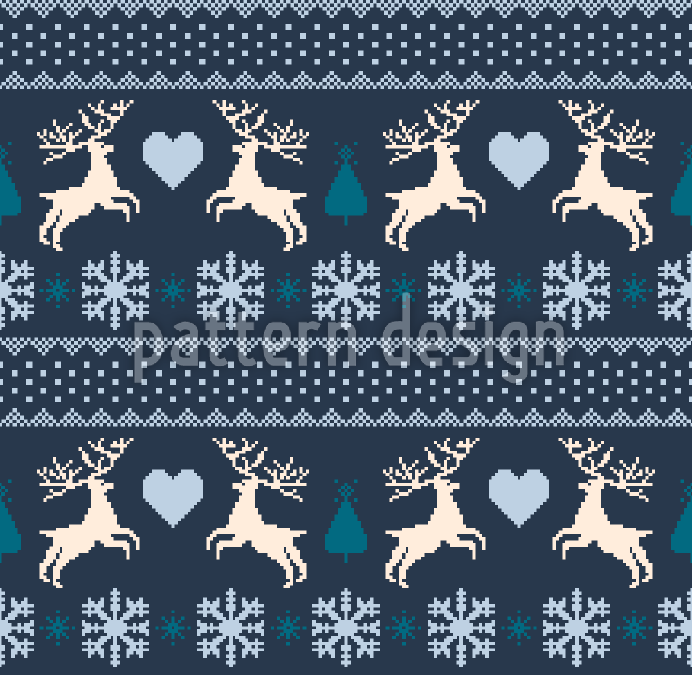 겨울 순록과 눈송이 원활한 벡터 패턴 디자인