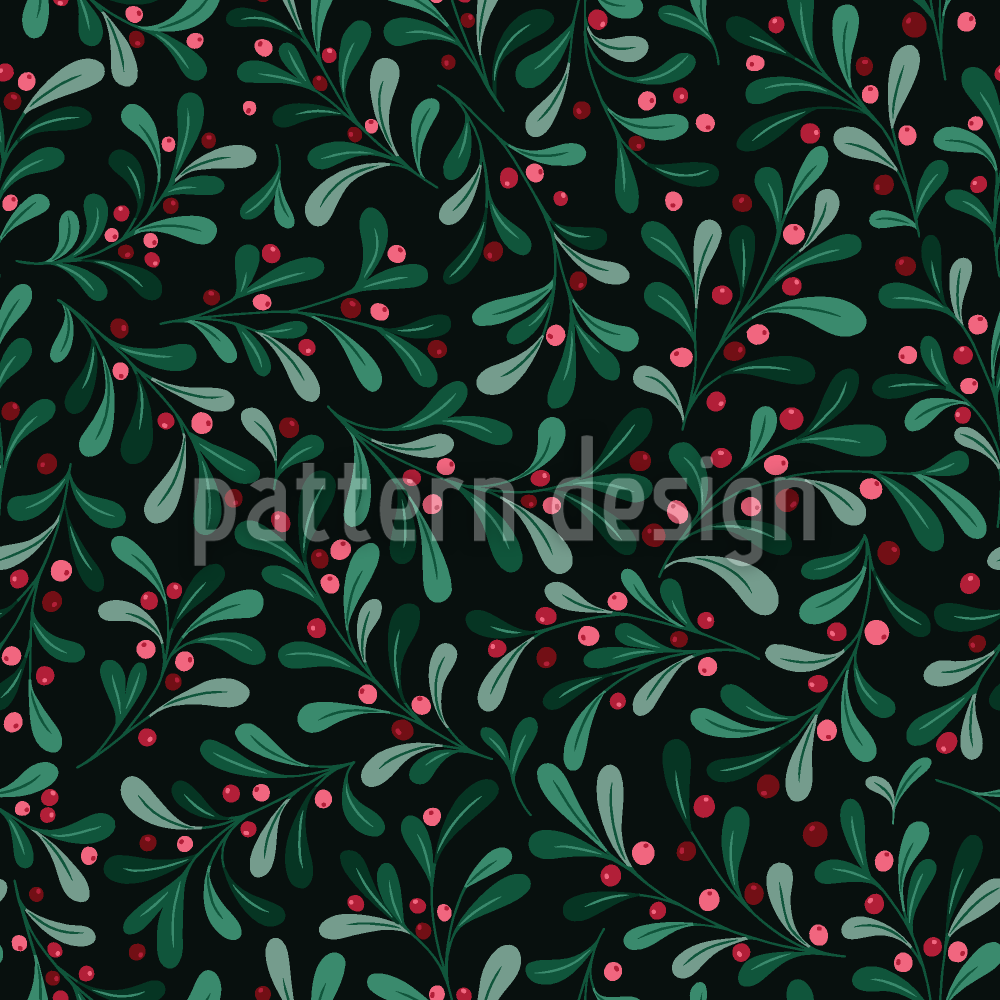 겨우살이 잎과 열매 원활한 벡터 패턴 디자인