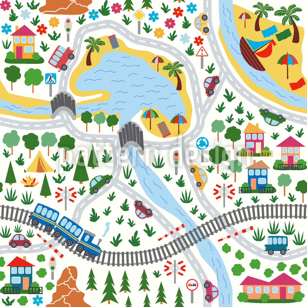 | 설명 | 자동차, 버스 및 기차, 주택 및 도로, 강, 숲 및 도시가 있는 도시의 상세한 어린이 지도가 포함된 매끄러운 벡터 패턴. | ||