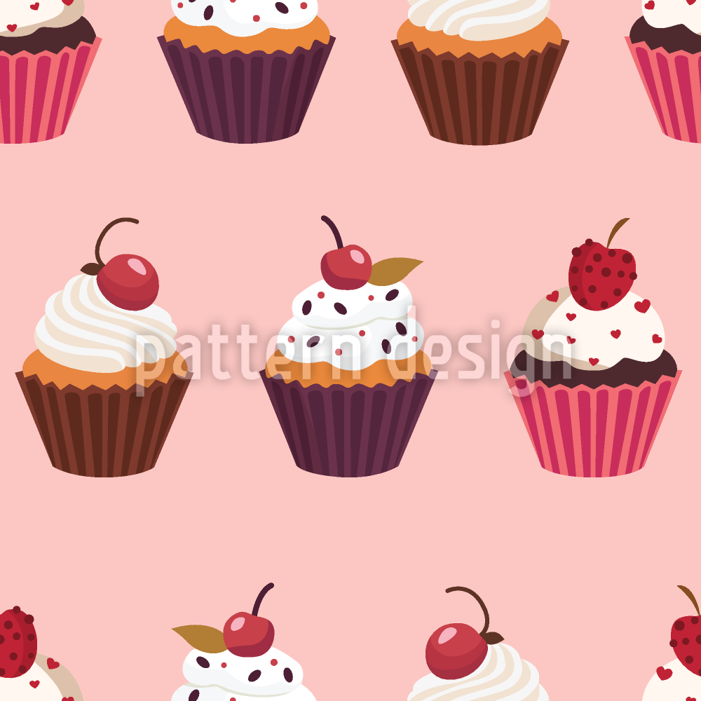 딸기가 든 컵케이크 원활한 벡터 패턴 디자인