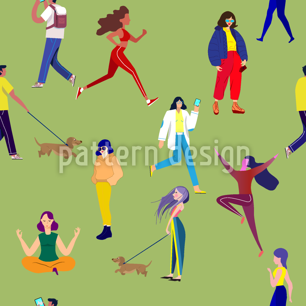 | 설명 | 공원의 들판에서 일상 활동을 하는 사람들. | ||