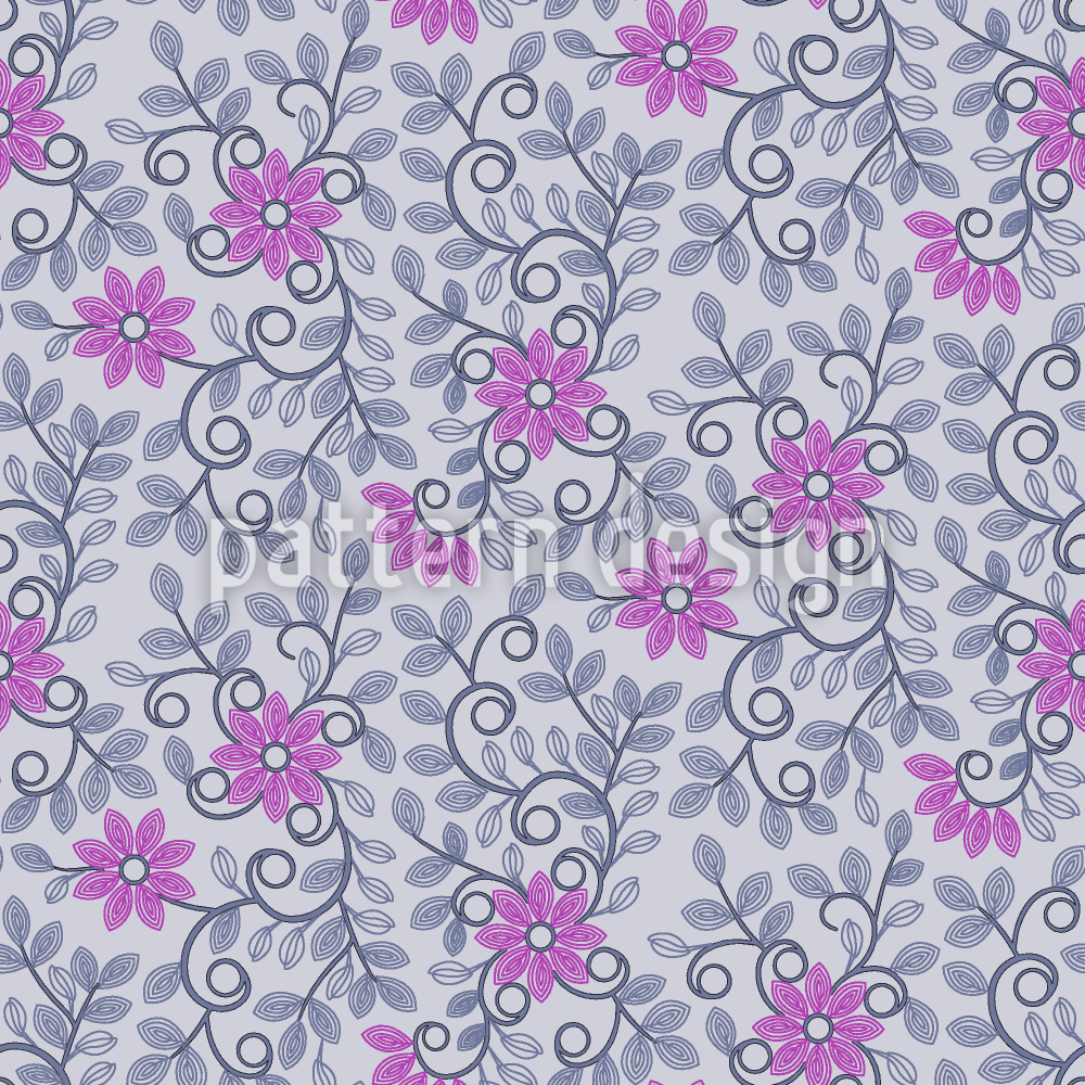 | 설명 | 잎과 나선형 끝이 달린 꽃 덩굴이 있는 플로랄 패턴. | ||