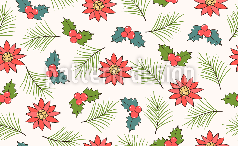 | 설명 | 소나무 가지, 포인세티아 꽃, 홀리 일러스트가 있는 크리스마스 패턴. | ||