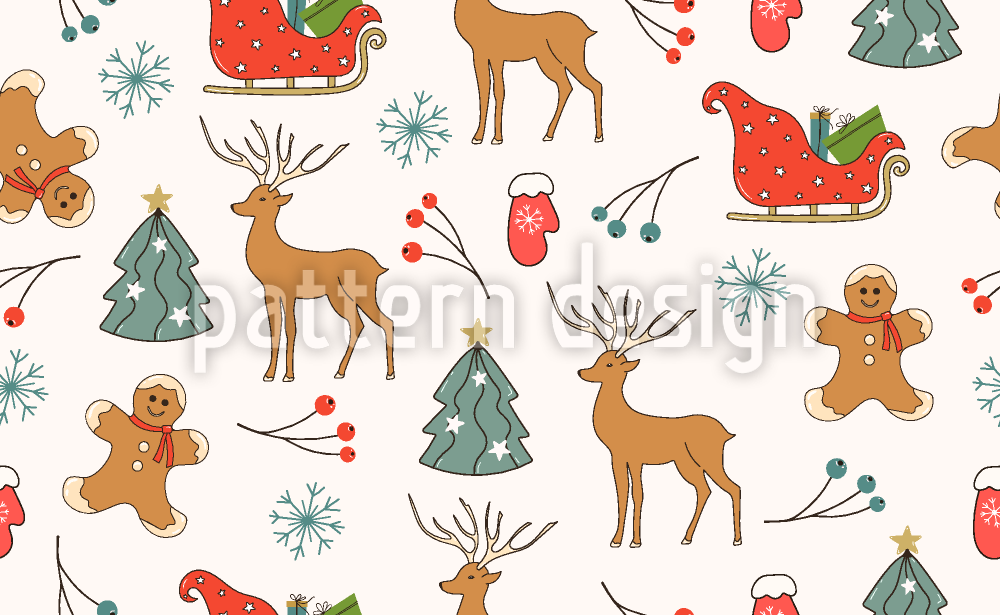 | 설명 | 썰매, 순록, 크리스마스 트리, 장갑, 진저브레드 맨, 눈송이, 열매가 달린 마가목 나뭇가지가 있는 크리스마스 패턴. | ||