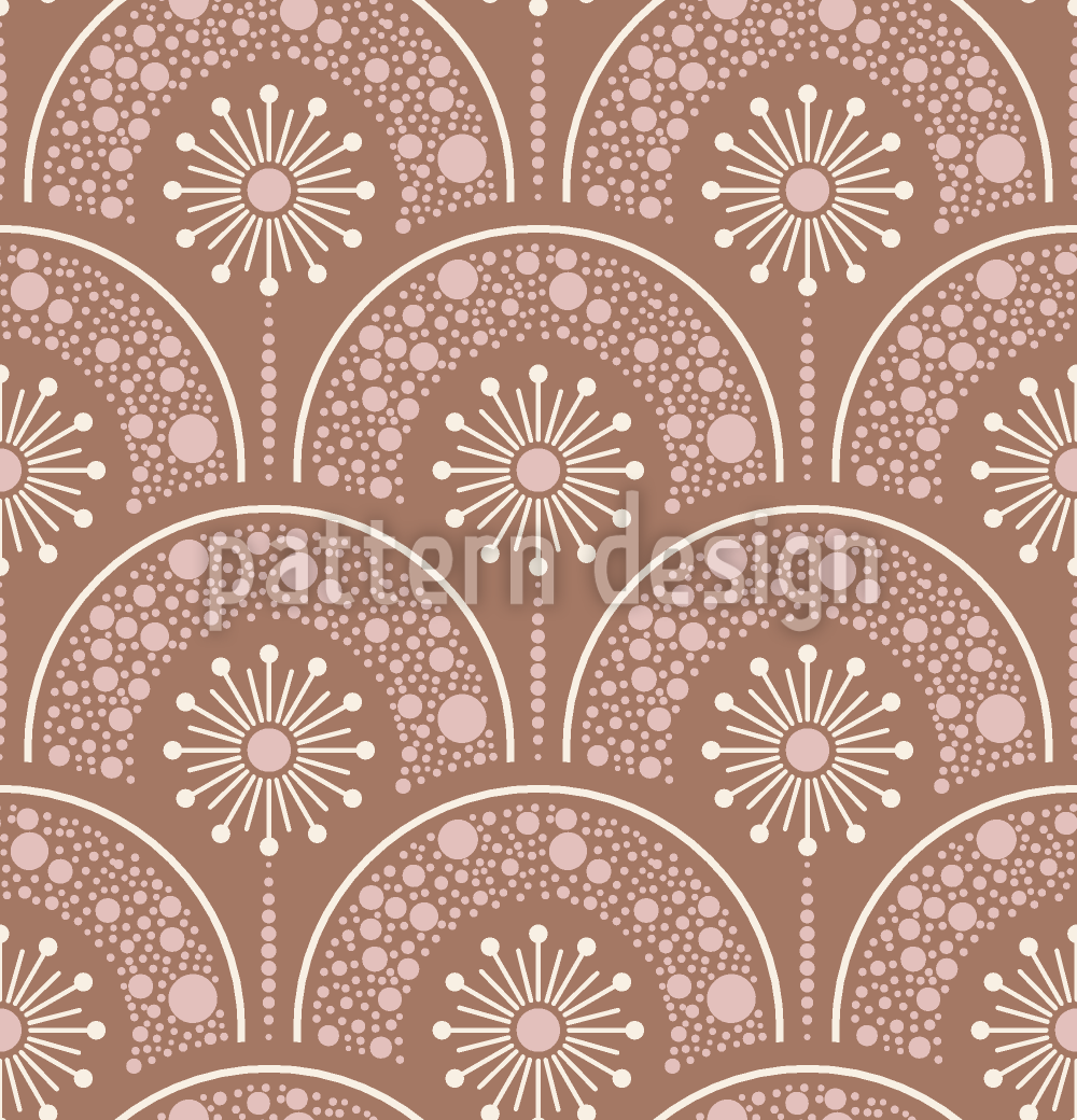 | 설명 | 장식된 진저브레드를 연상시키는 아치와 도트 내부에 양식화된 민들레가 있는 추상적인 패턴. | ||