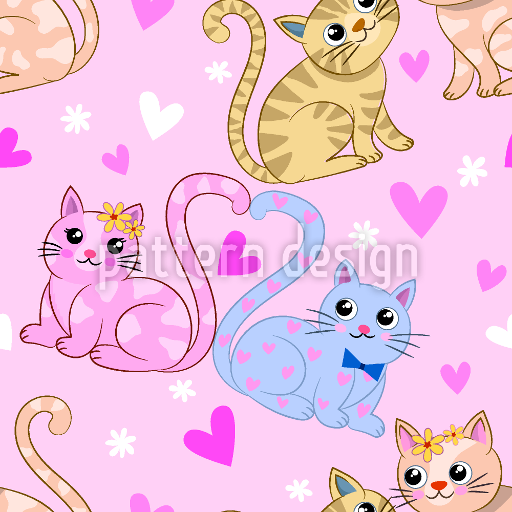 발렌타인 데이 캣 원활한 벡터 패턴 디자인