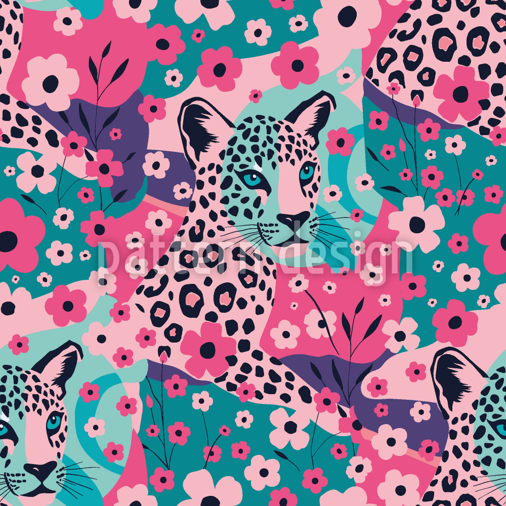 | 설명 | 양식화된 식물 사이에 앉아 있는 표범이 특징인 다채로운 패턴. | ||