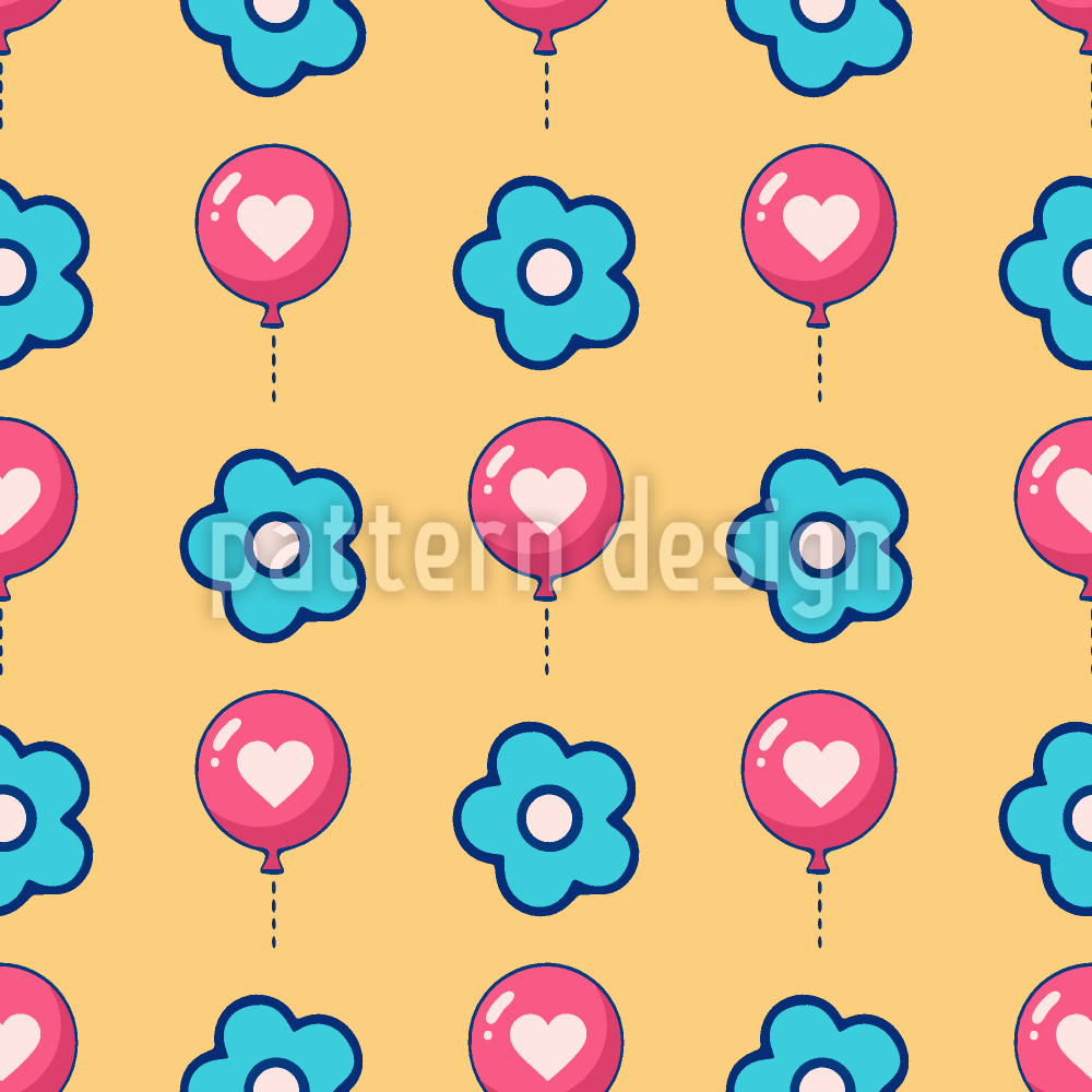 | 설명 | 하트와 단순화된 꽃이 있는 즐거운 풍선 패턴. | ||
