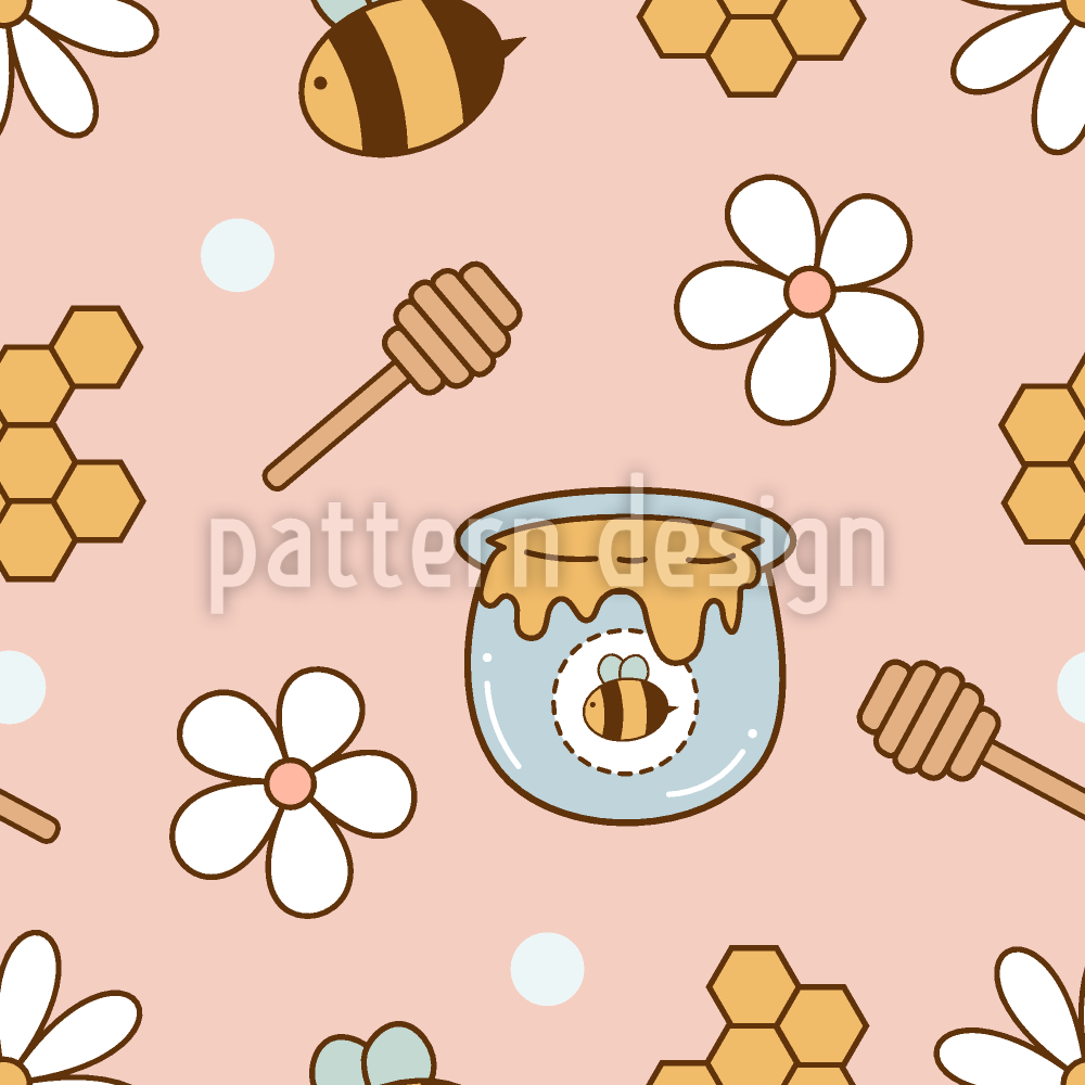| 설명 | 꿀병, 윙윙 거리는 꿀벌, 허니 디퍼, 육각형 벌집, 꽃이 특징인 매력적인 만화 패턴. | ||