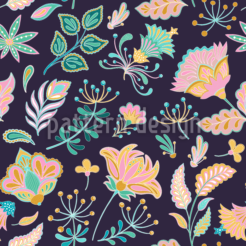 | 설명 | 페이즐리에서 영감을 받은 꽃의 플로랄 패턴. | ||