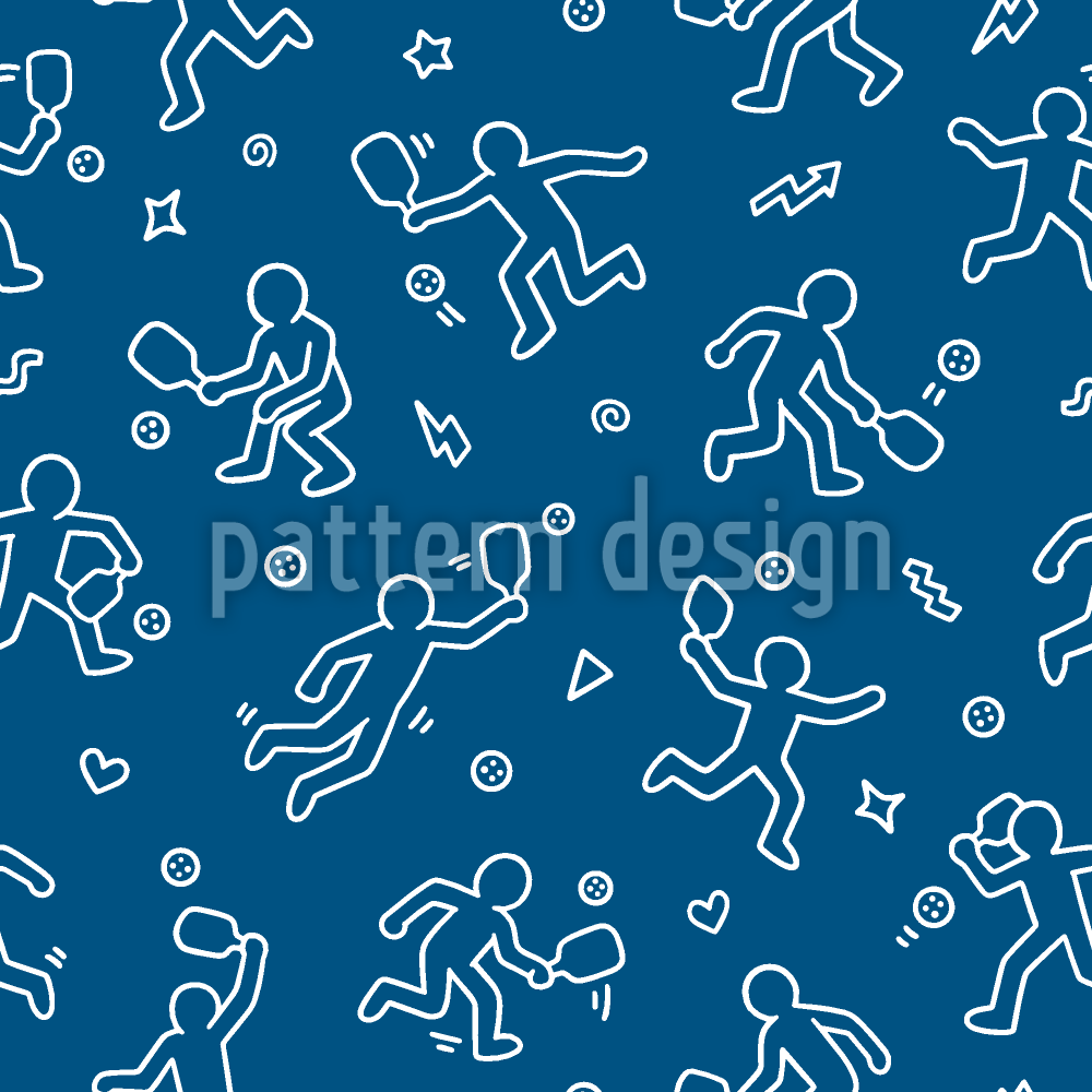 피클볼 플레이어와 플레이풀 두들 원활한 벡터 패턴 디자인