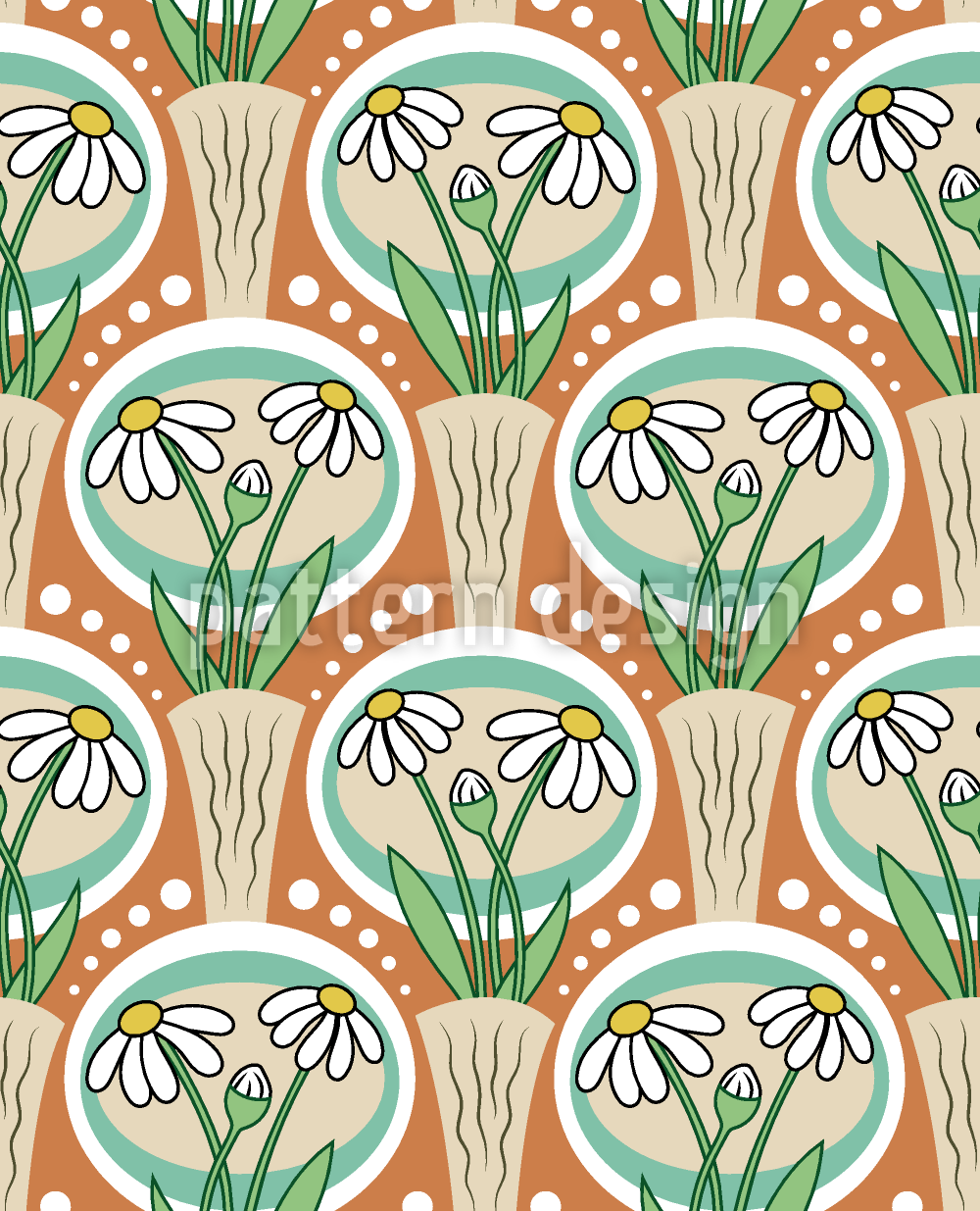 데이지가 든 꽃병 원활한 벡터 패턴 디자인