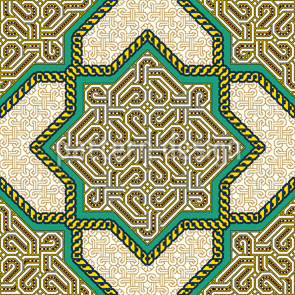 | 설명 | 정교한 직조 로프 모티프를 세련된 팔각형 별 패턴으로 배열한 아랍식 장식 디자인입니다. | ||