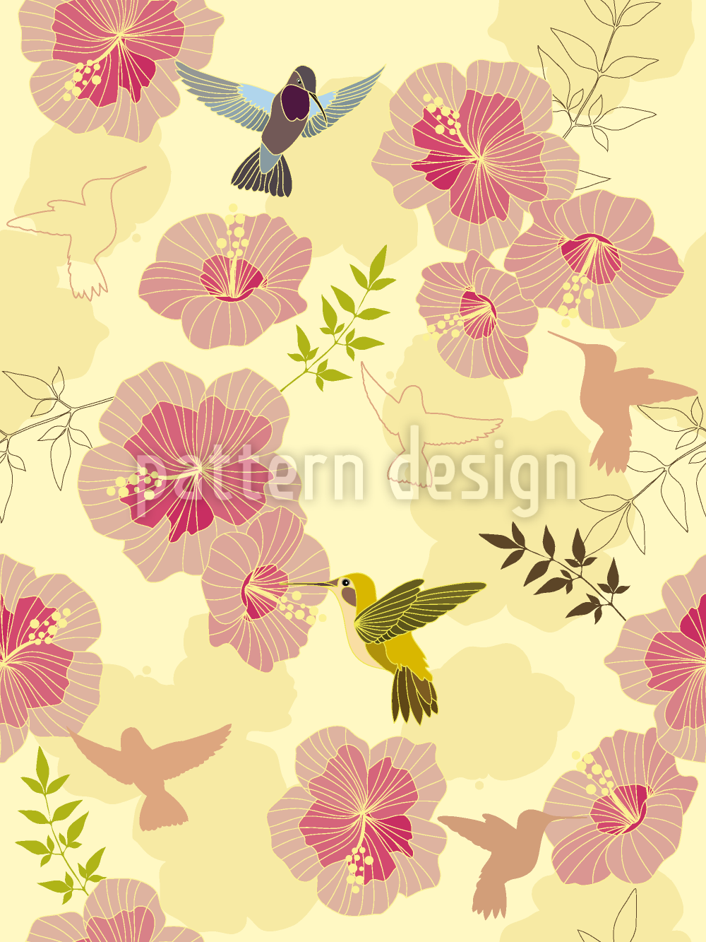 허밍버드 맛 히비스커스 원활한 벡터 패턴 디자인