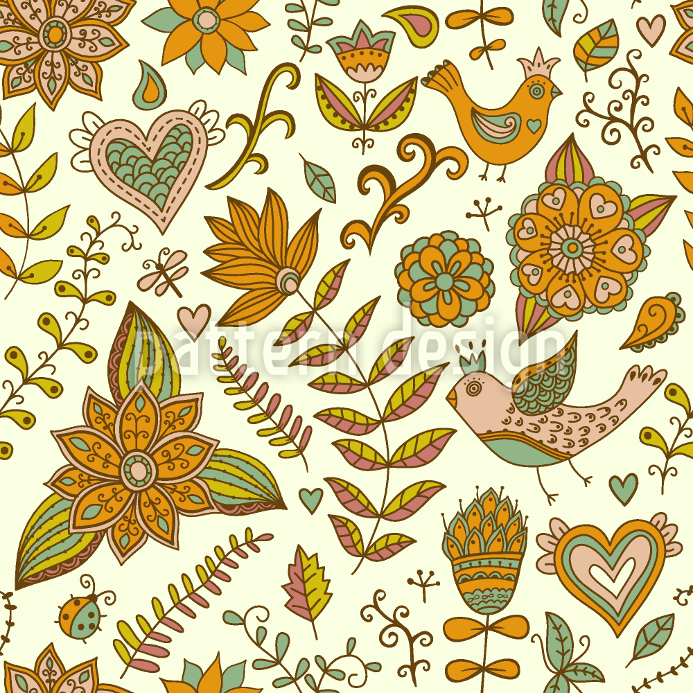 | 설명 | 일러스트레이션 스타일의 꽃 요소와 새가 있는 낭만적인 디자인. | ||