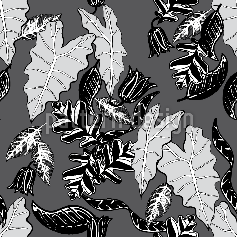| 설명 | 나뭇잎의 훔치기를 흑백으로 보여주는 플로랄 패턴. | ||