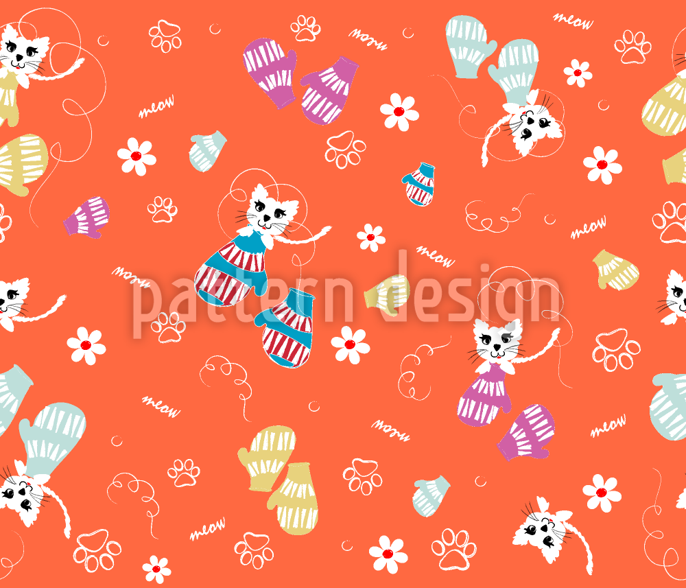 벙어리 장갑에 새끼 고양이 원활한 벡터 패턴 디자인