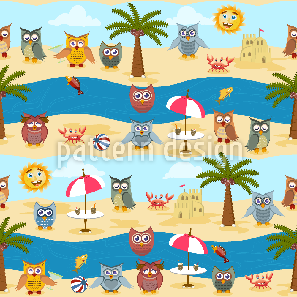 올빼미 바이 더 씨 원활한 벡터 패턴 디자인
