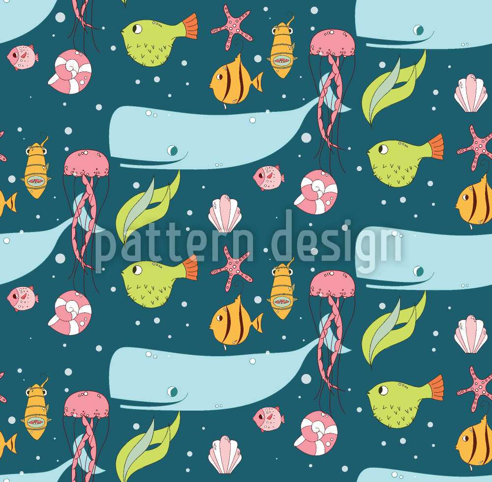 | Omschrijving | Ontwerp met onderwaterscène, met illustraties van vissen, walvissen, gelei en schelpen. | ||