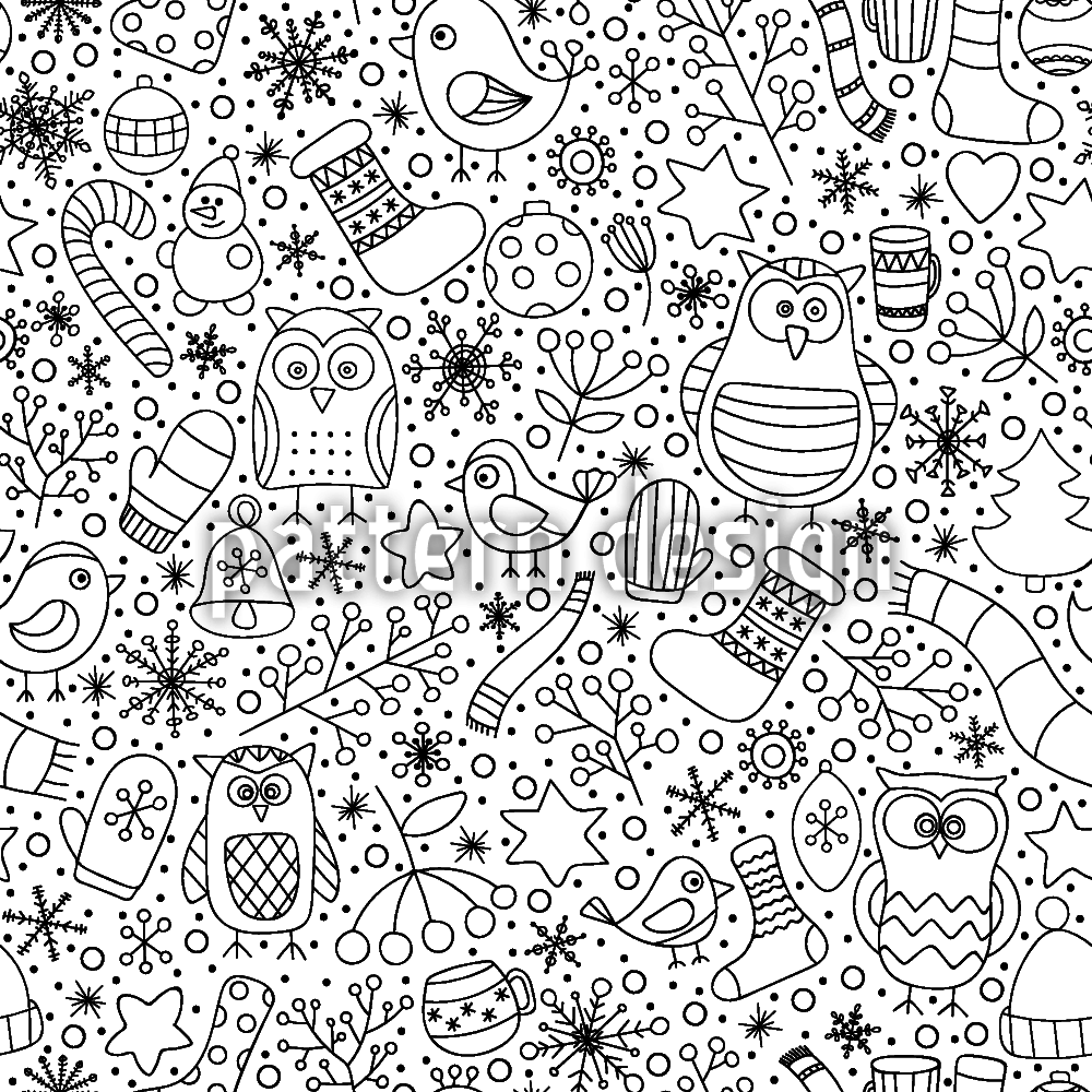 | Omschrijving | Naadloos kerstpatroon met omtrek winterillustraties. | ||