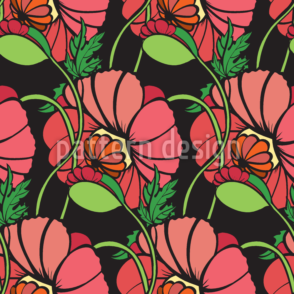 Poppy Land Naadloos vectorpatroon ontwerp