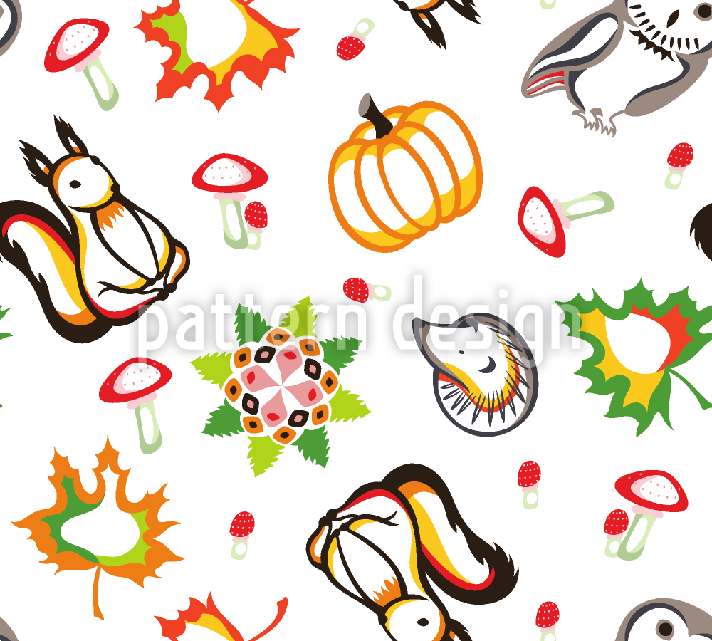 | Omschrijving | Herfstpatroon met egel, eekhoorn en uil. | ||