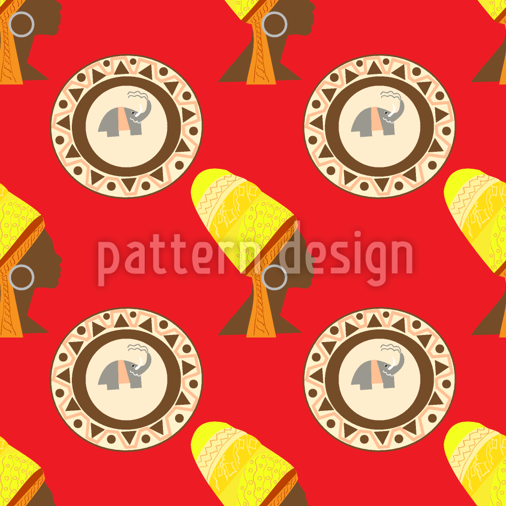 | Omschrijving | Naadloos patroon met het silhouet van een Afrikaanse schoonheid vergezeld van een badge met een olifant. | ||