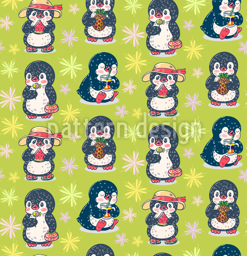 Pinguïn Summer Naadloos vectorpatroon ontwerp