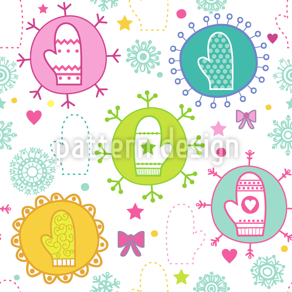 | Omschrijving | Naadloos winterpatroon met verspreide handschoenen met verschillende motieven in cirkels. | ||