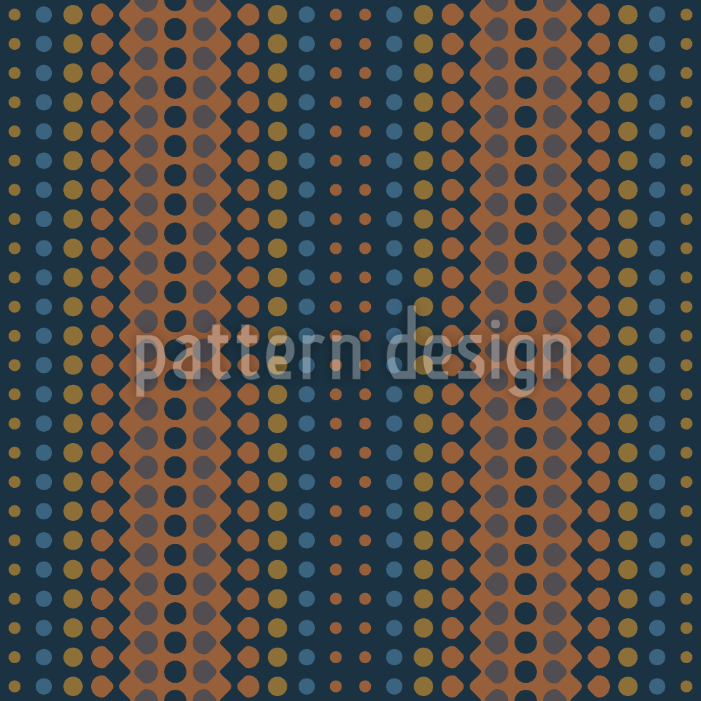 | Omschrijving | Gevormde loop van stippen, strepen. Kleur: warme metalen tinten op middernachtblauw. | ||
