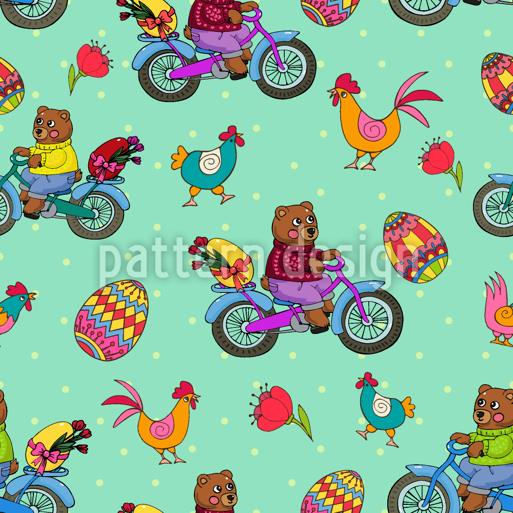 | Omschrijving | Patroon van schattige beren op motorfietsen die Pasen vieren. | ||