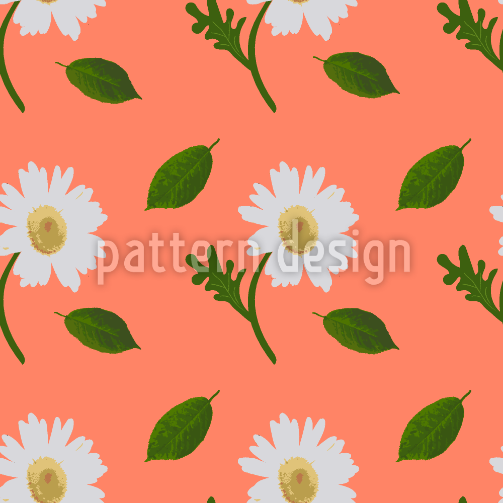 | Omschrijving | Een botanisch vectoraquarelpatroon met gestileerde madeliefjes en bladeren. | ||