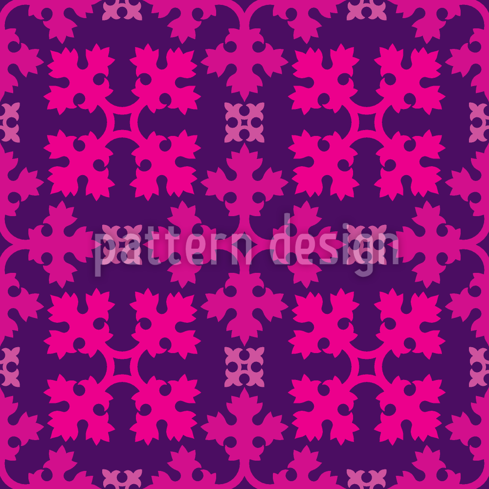 | Omschrijving | Een zich herhalende opstelling van sierlijke, bladachtige motieven verweven met kleine geometrische clusters in een ritmische, decoratieve indeling. | ||