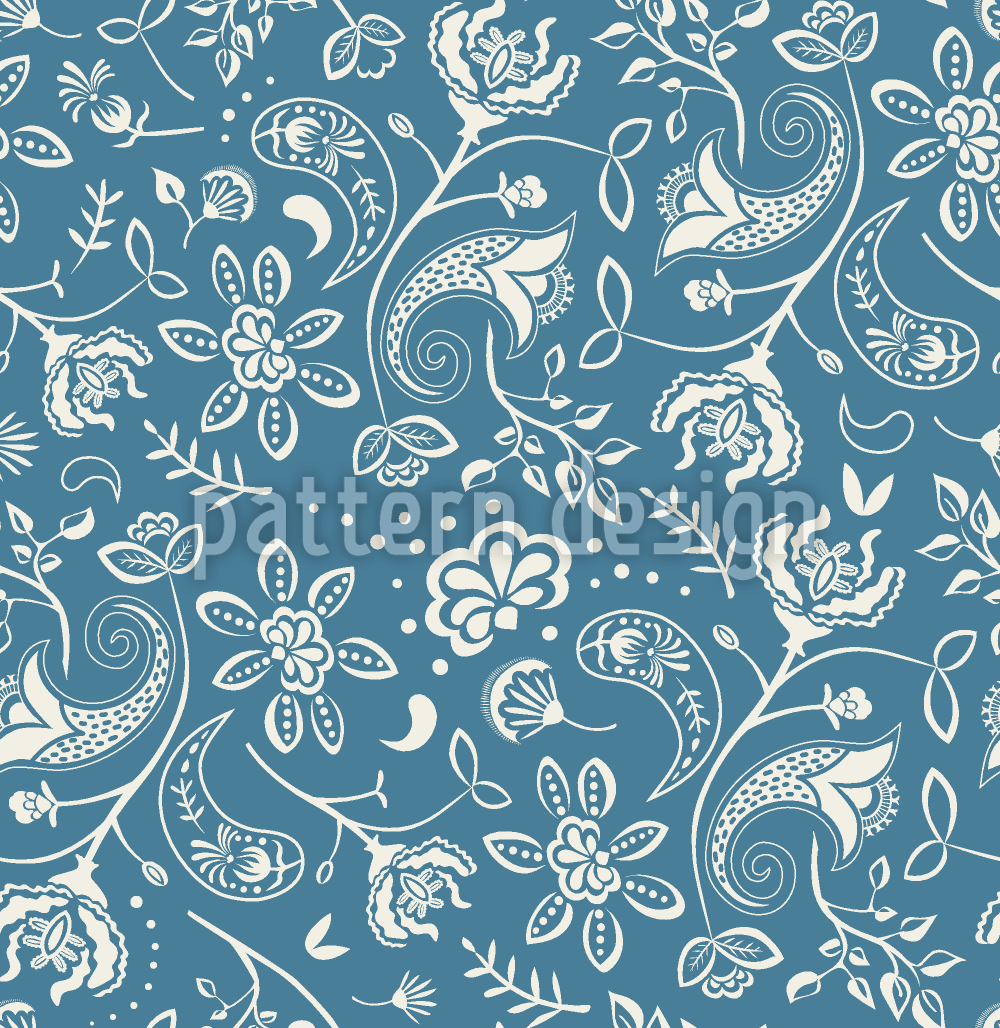 | Omschrijving | Een vloeiend patroon van paisley en fantasiebloemen is verweven met zachte, gebogen folkloristische motieven om een gevoel van tijdloze natuurlijke lichtheid te creëren. | ||