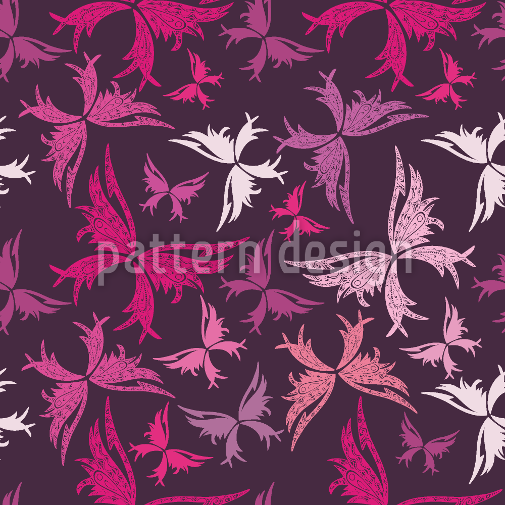 | Omschrijving | Een verscheidenheid aan gestileerde vlinderornamenten vliegen op een donkere achtergrond. | ||