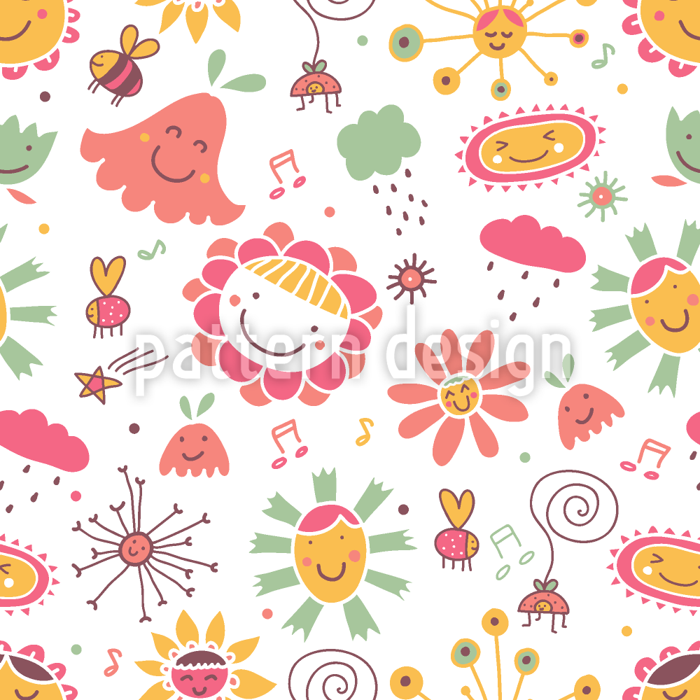 | Omschrijving | Deze bloemen zingen voor jou en mij. En ze geven geluk. Niedliches fantasieontwerp met grappige bloemen, noten, insecten, regenwolken en zonornamenten. | ||