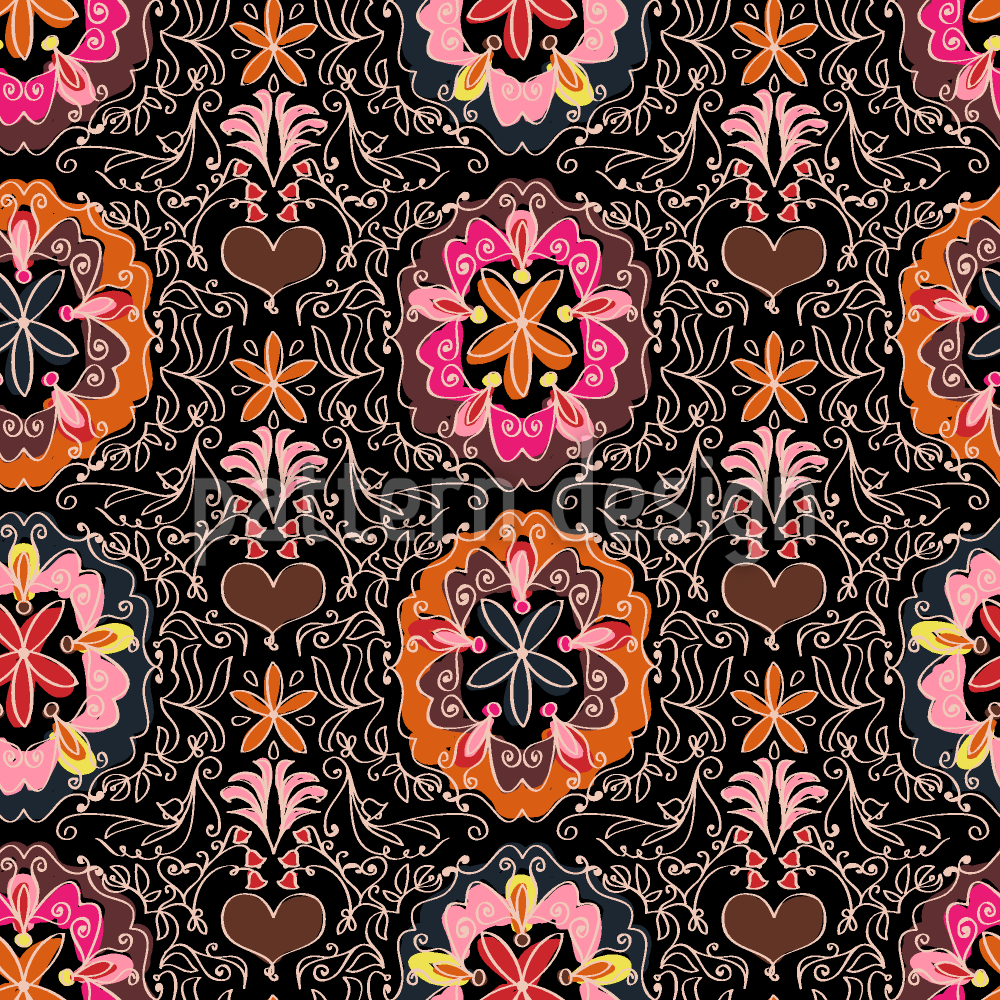 | Beskrivelse | Et rikt dekorert sømløst mønster med blomsterillustrasjoner. | ||